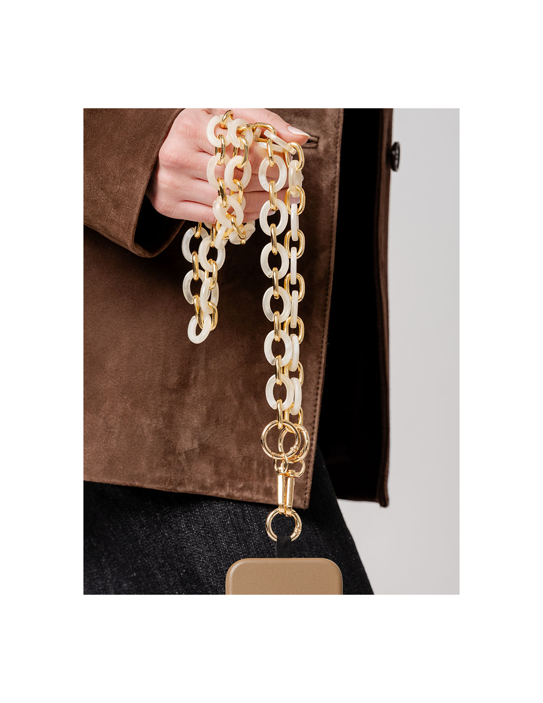 Il s'insère à l'intérieur de votre coque, en partie basse. Un petit anneau amovible dépassera de votre connecteur de charge. Vous pourrez ainsi y suspendre votre chaîne de téléphone.