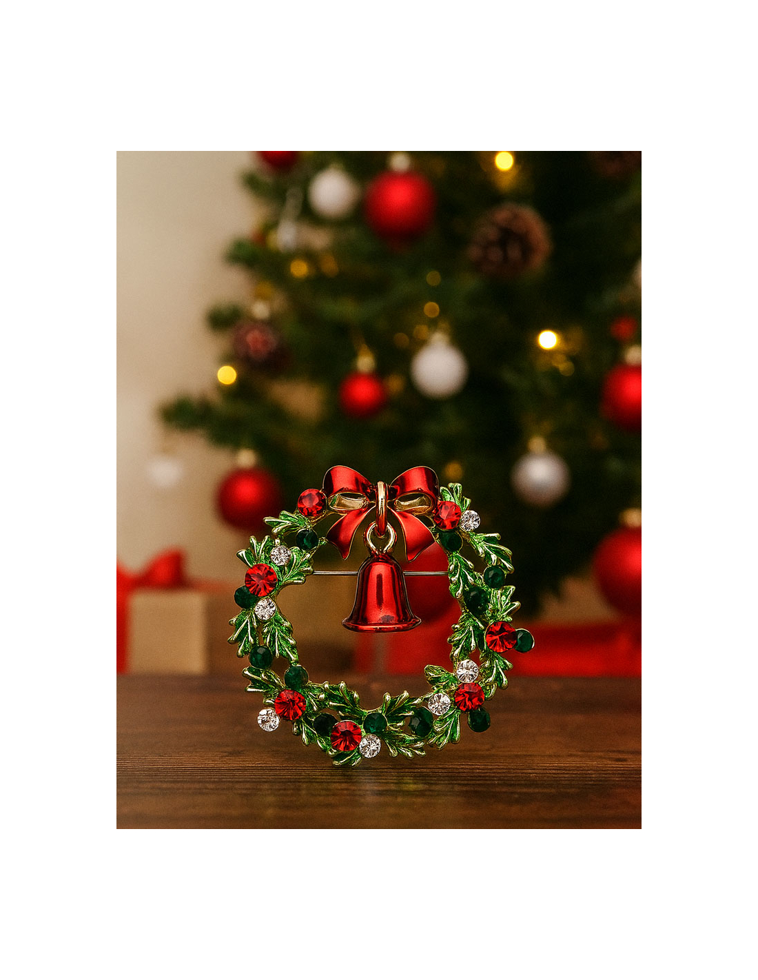 Apportez une touche d’enchantement à vos tenues de fêtes de fin d'année, avec cette broche élégante, en forme de couronne de Noël, délicatement ornée de strass colorés et surmontée d’un joli nœud rouge et d’une petite clochette suspendue. Ce bijou scintillant évoque toute la magie des fêtes de fin d’année et se porte aussi bien sur un pull douillet, une veste de soirée ou un manteau chic.