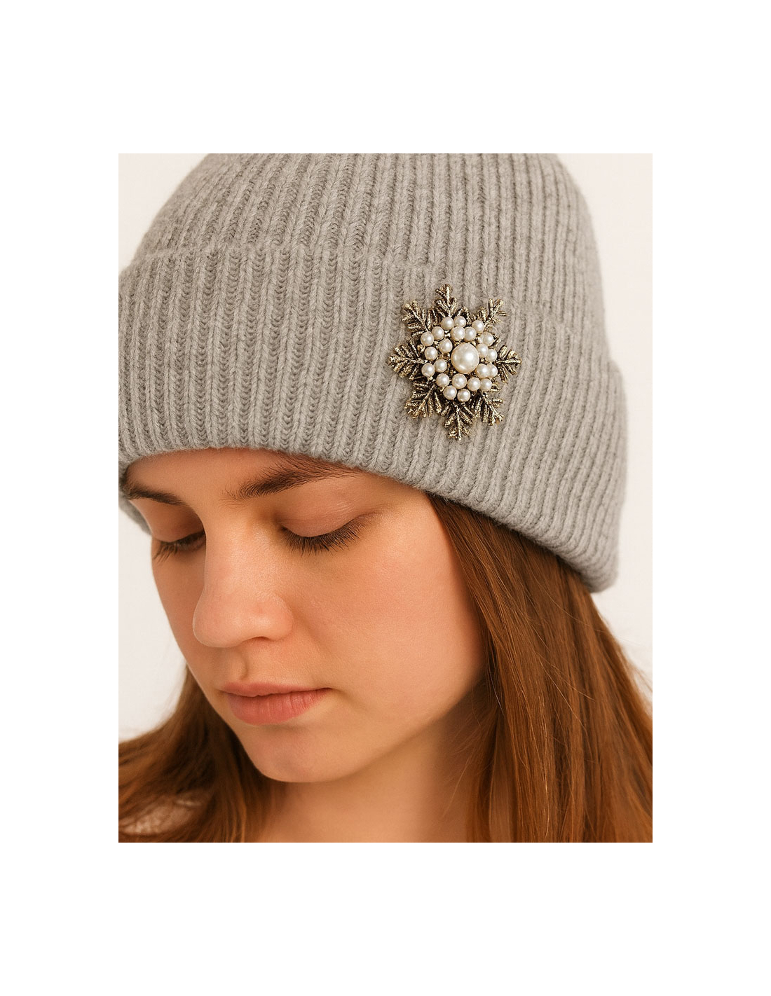 Broche vintage pour femme avec perles et flocon de neige.